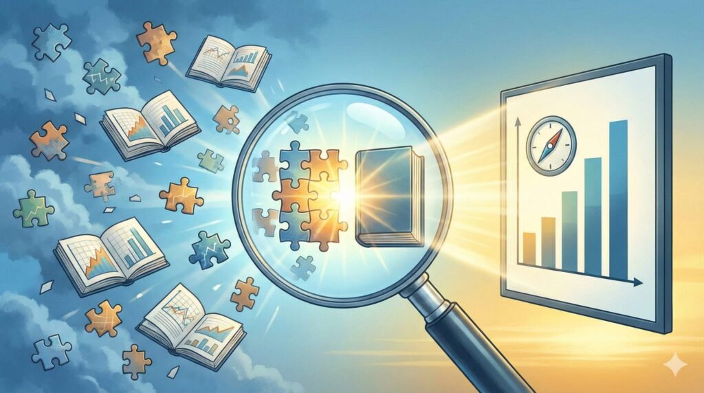 システマティックレビューとは、特定のテーマ(リサーチクエスチョン)に関する既存の研究を、系統的かつ網羅的に収集・評価・統合する「包括的な文献レビュー手法」を指します。 あらかじめ定められた厳密な検索手順に従って世界中のデータベースから論文を検索し、研究の質(バイアスのリスクなど)を批判的に吟味した上で、得られた知見を整理します。システマティックレビューの特徴は、結果の統合が「定性的」であっても「定量的」であってもよい点にあります。つまり、データを数値でまとめられない場合でも、文章や表を用いて全体的な傾向を論理的にまとめることが可能なのです。