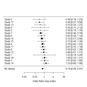 - 主な指標: オッズ比 (OR) のみが算出可能。